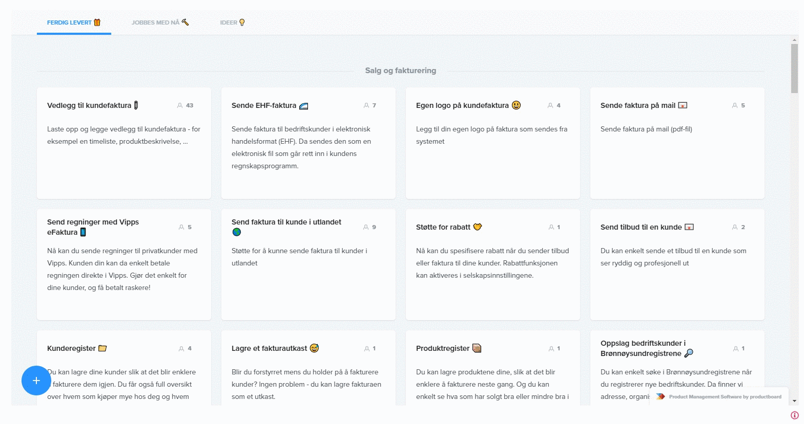 Ta en titt på veikartet vårt for å se hva vi slags funksjonalitet vi har i regnskapssystemet, og hva vi jobber med.