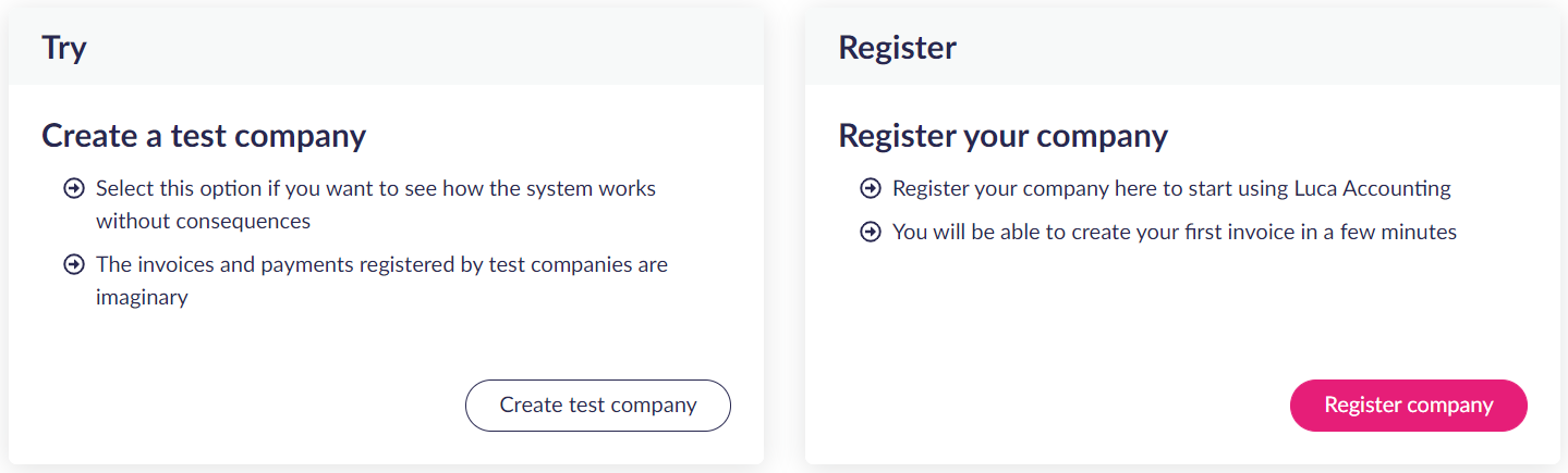 Want to test our accounting solution before getting started for real? Create a test company! Explore without worrying about it having any impact on your company’s real accounts.