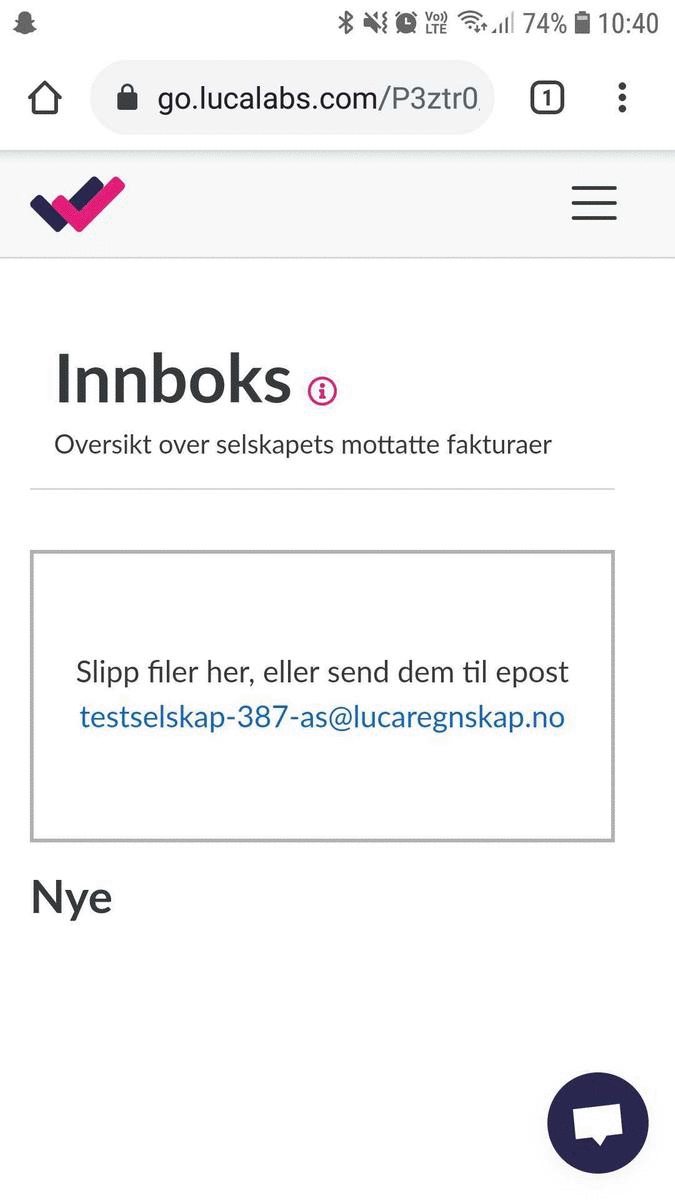 Nedenfor finner du en beskrivelse av hvordan du bruker innboksen via nettleseren på mobilen, til å ta og laste opp bildene.