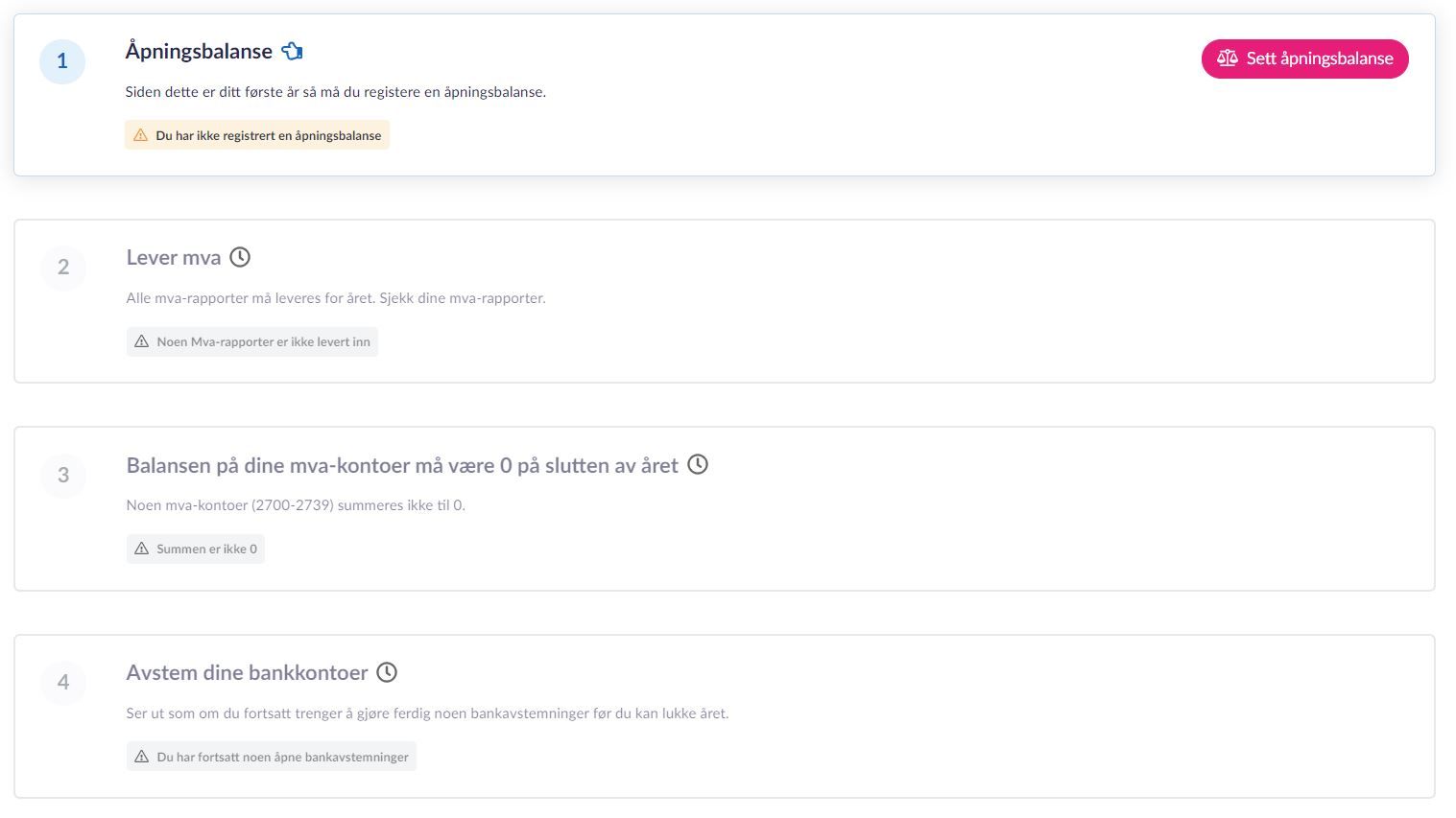 Derfra legger vi opp til en enkelt prosess for deg. Det første steget du må gjennomføre er å lukke regnskapsåret.