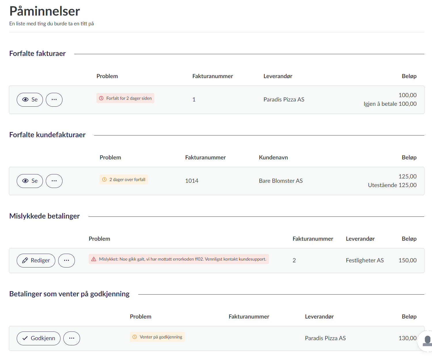 Det kan være utfordrende å ha kontroll på alle salgsfakturaer, regninger og frister til enhver tid. Derfor hjelper vi deg med å ta tak i det som haster mest i regnskapet ditt akkurat nå.