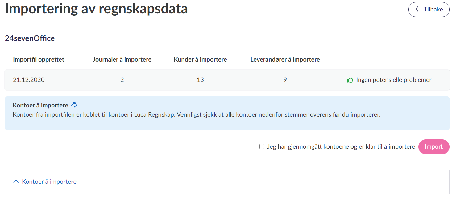 2. Nå importeres regnskapet ditt! Dette kan ta litt tid, avhengig av hvor mange føringer som skal importeres.